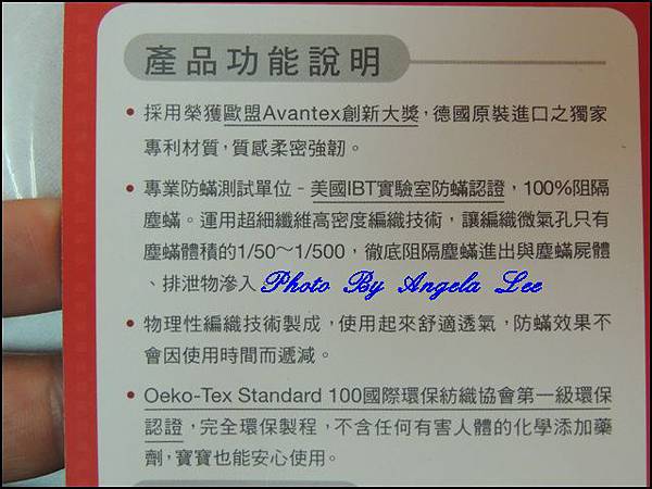 1. 100%防蟎:德國進口表布, 獲美國IBT實驗室認證, 具真正防蟎效果, 永久阻隔塵蟎進出