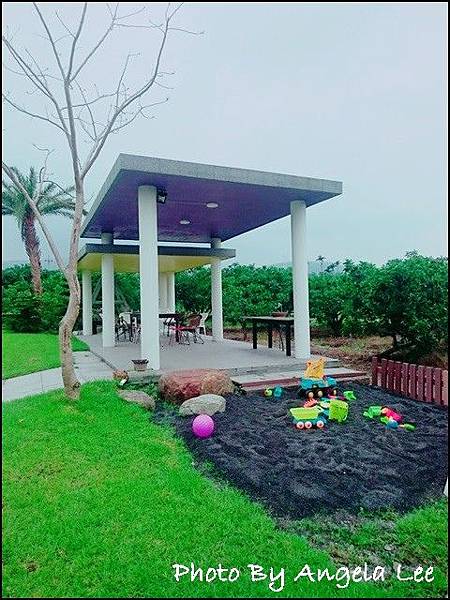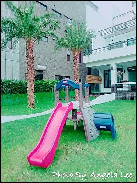 前有溜滑梯、後有秋千與玩沙區
